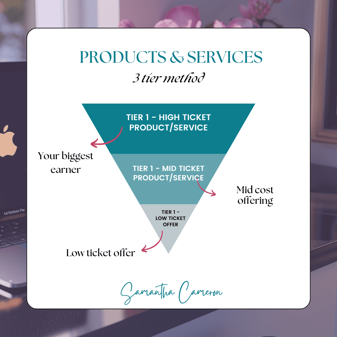 Tier 1 – Your content/messaging will be focused on the main product/service you provide or if you are launching something that month or your biggest earning product.